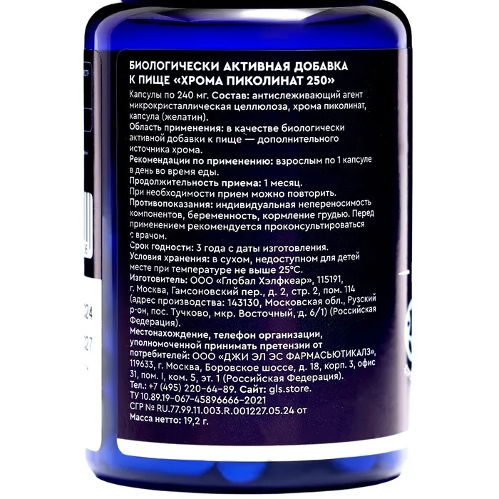 GLS Хрома Пиколинат 250 мкг – это эффективный инструмент для поддержания здорового образа жизни и достижения ваших целей в похудении. Попробуйте эту добавку и ощутите разницу!