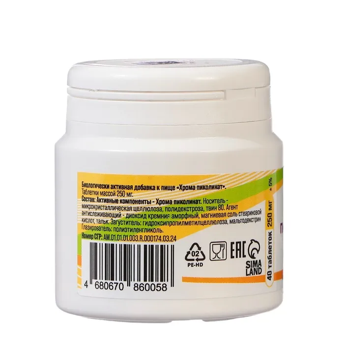 Биологически активная добавка к пище «Хрома пиколинат, 40 таблеток по 250 мг»