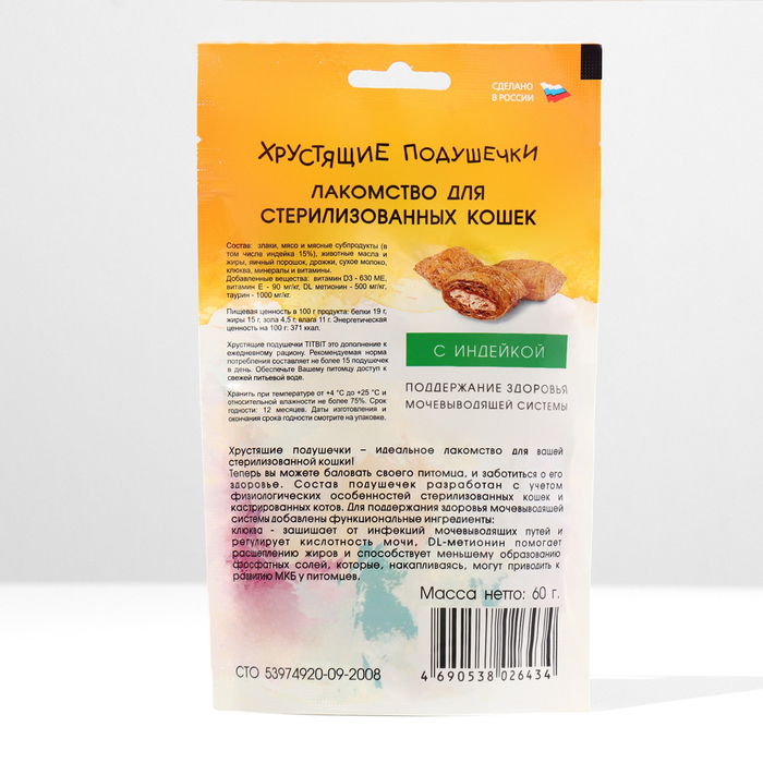 Хрустящие подушечки – идеальное лакомство для вашей стерилизованной кошки! Теперь вы можете баловать своего питомца, и заботиться о его здоровье.