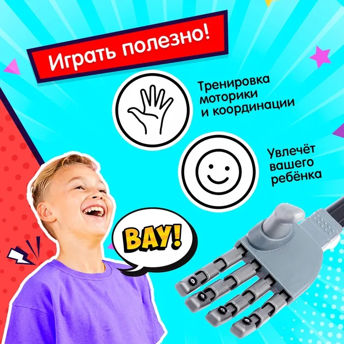 Хваталка-манипулятор «Дай пять» позволит ребёнку почувствовать себя героем фантастического фильма! Игрушка пригодится не только во время захватывающих игр, но и на вечеринке, и даже в быту. Хваталка превратит обычную уборку в сцену эпического сражения с беспорядком.