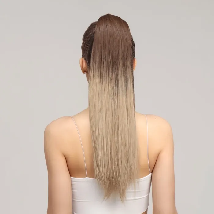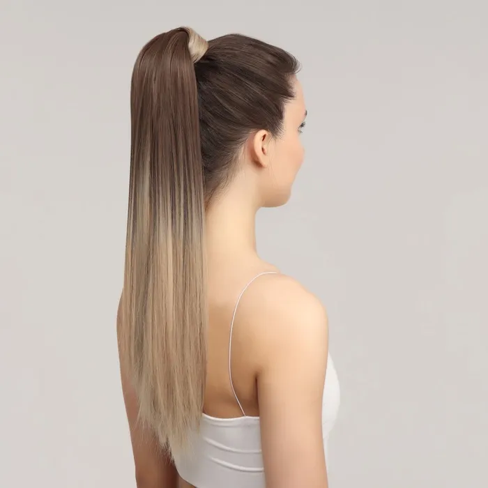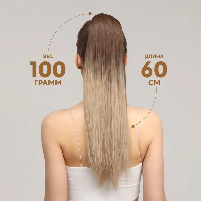 Хвост накладной, прямой волос, на резинке, 60 см, 100 г, омбре русый, блонд — Характеристики