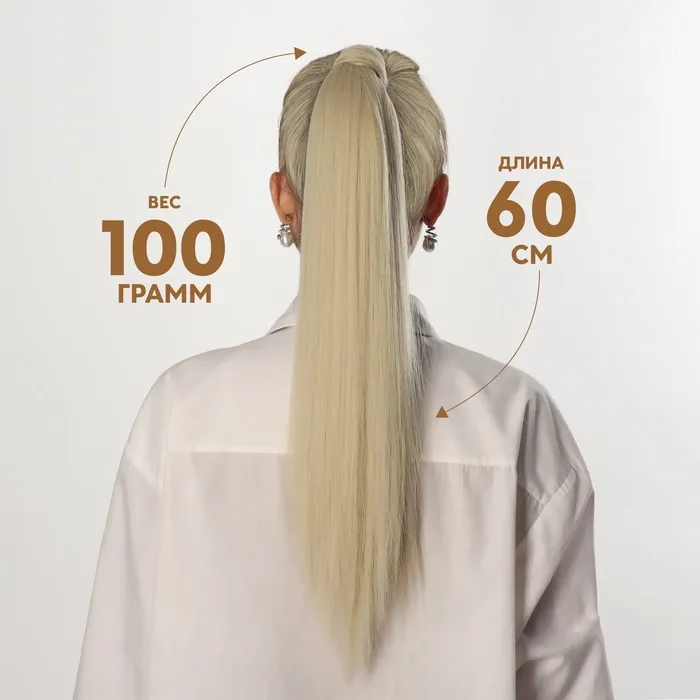 Хвост накладной, прямой волос, на резинке, 60 см, 100 гр, цвет холодный блонд(#SHT88B) — Характеристики