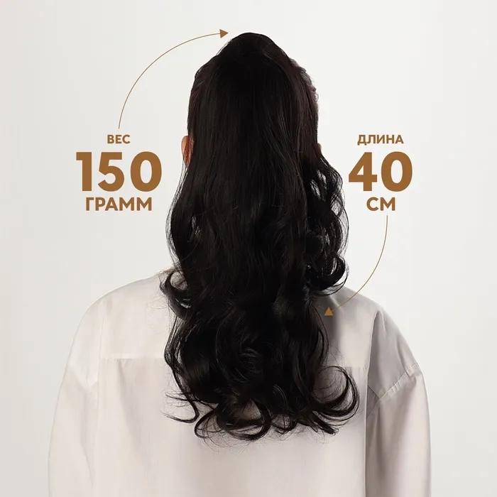 Хвост накладной, волнистый волос, на крабе, 40 см, 150 гр, цвет чёрный(#HTY4В) — Характеристики