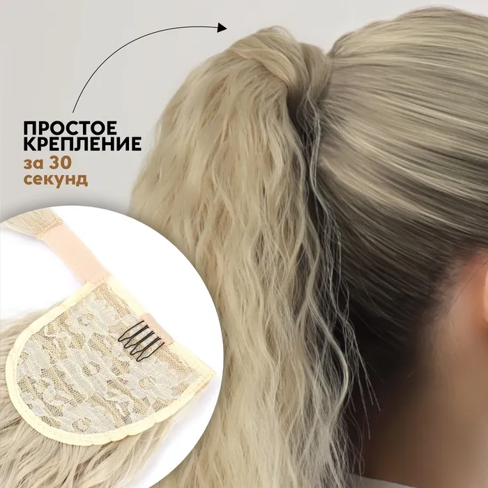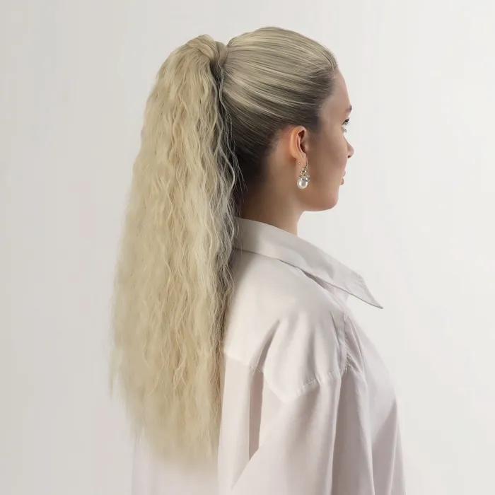 Хвост накладной, волнистый волос, на резинке, 60 см, 100 гр, цвет холодный блонд(#SHT88В) — Характеристики
