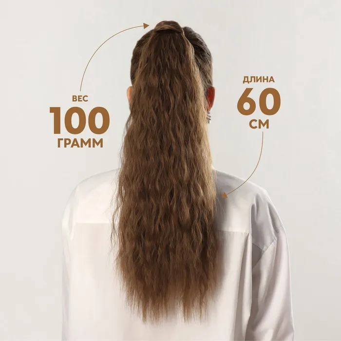Хвост накладной, волнистый волос, на резинке, 60 см, 100 гр, цвет русый(#SHT8A) — Характеристики