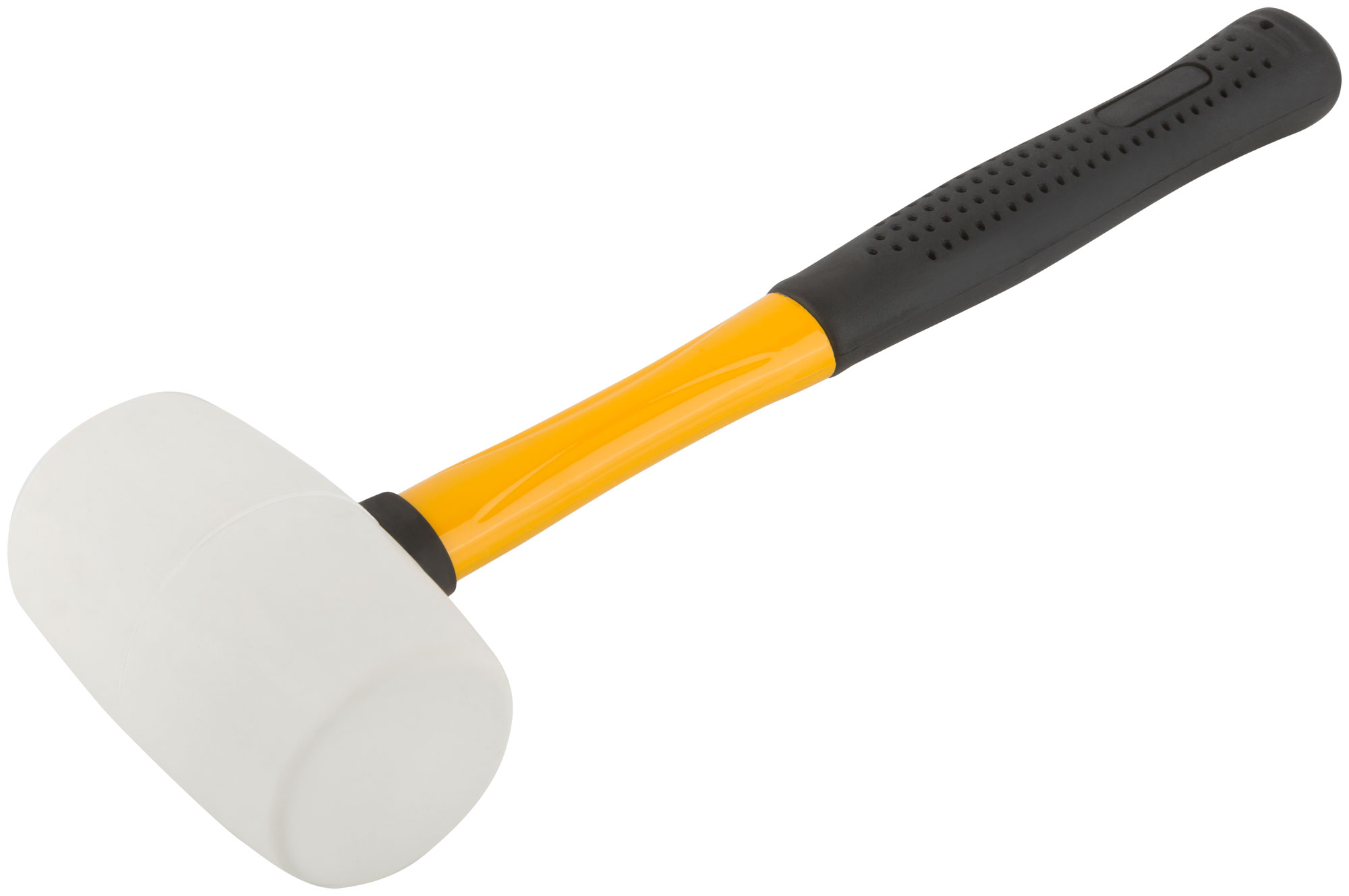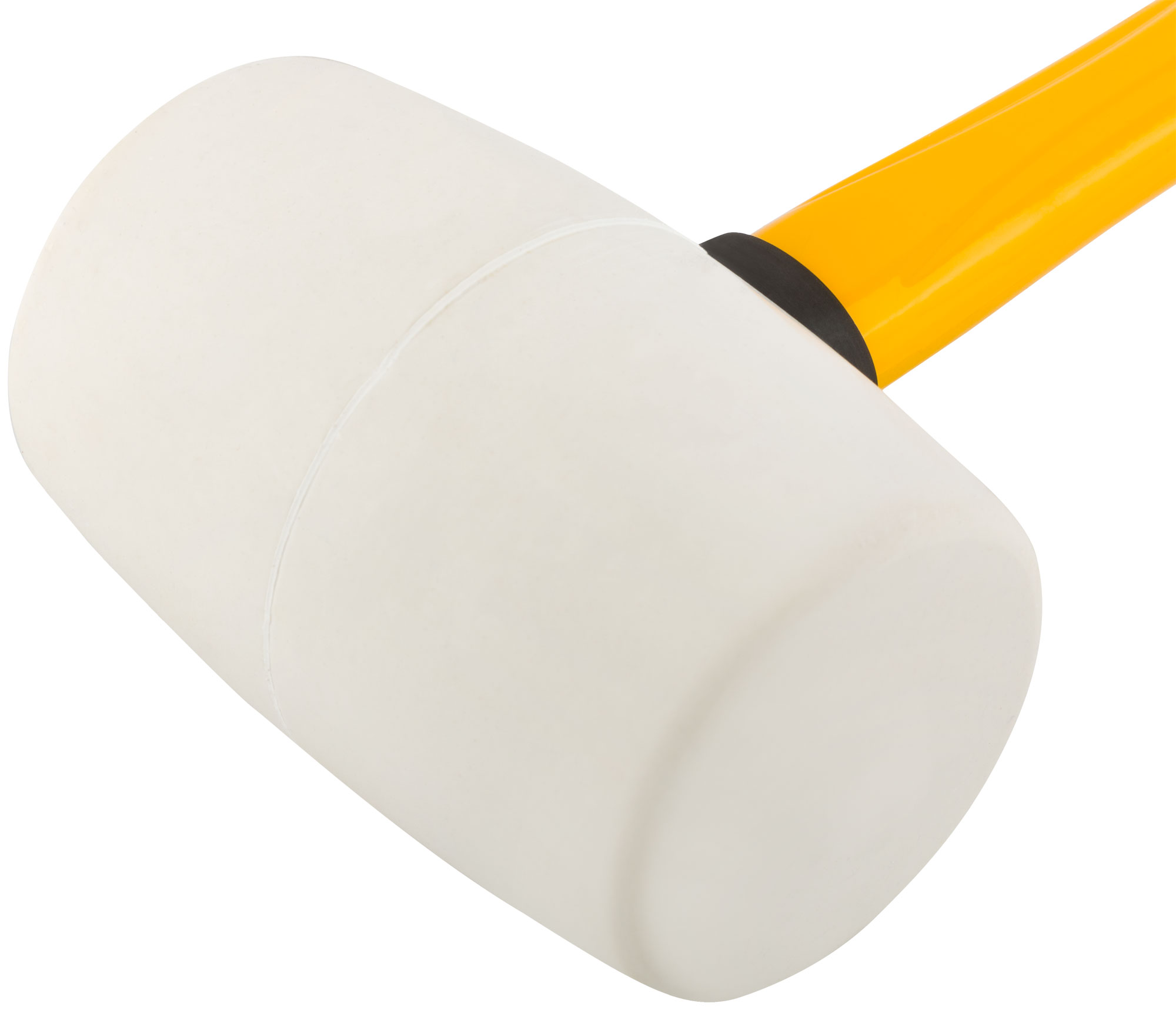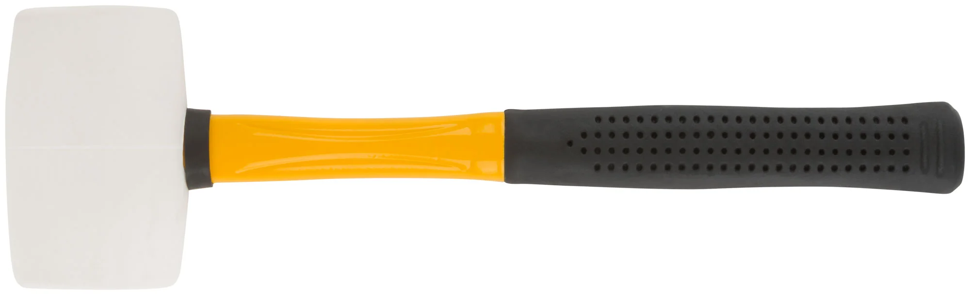 Эта киянка оснащена прочной фиберглассовой ручкой, которая обеспечивает надежный захват и устойчивость к ударным нагрузкам. Белый резиновый боёк гарантирует аккуратное взаимодействие с поверхностями без риска их повреждения.