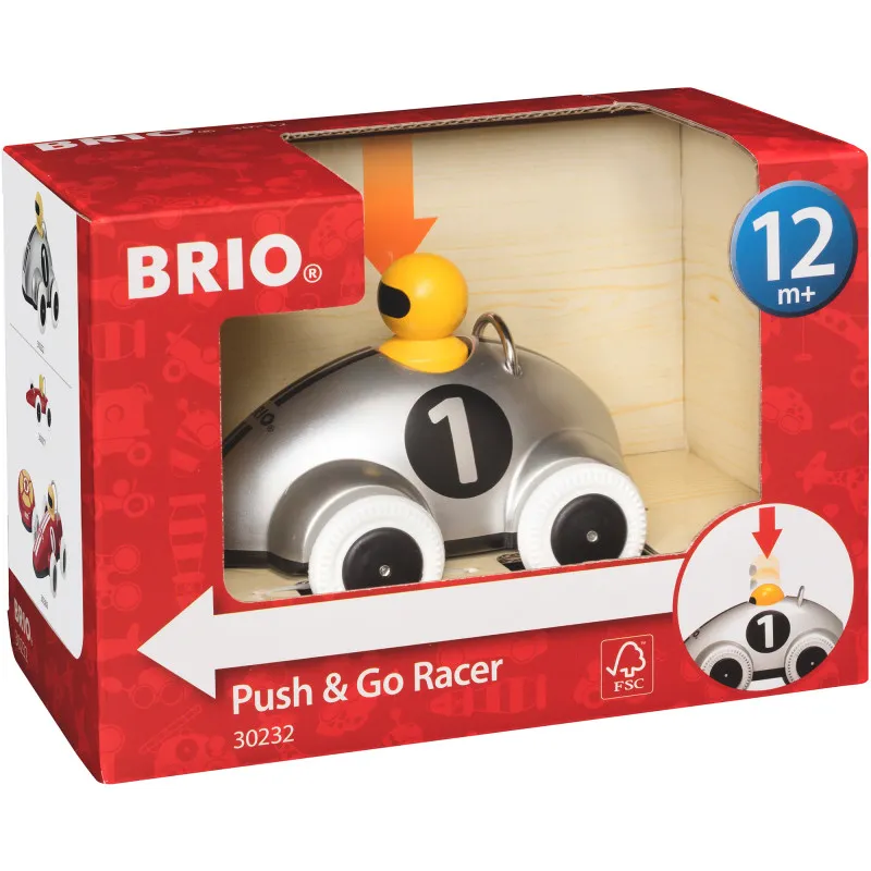 Гоночная машинка Brio Push & Go – это отличная игрушка для маленьких гонщиков! Просто нажмите на водителя, и машинка рванет вперед. Это увлекательный механизм, который стимулирует детей к движению и помогает развивать мелкую моторику. Рекомендуется для детей от 12 месяцев.