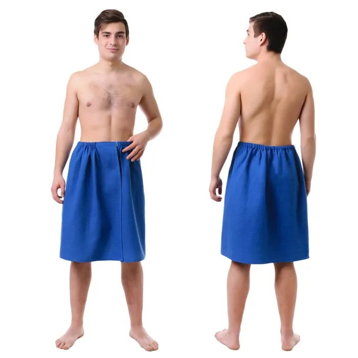 Килт для сауны вафельный мужской, 65×150, хлопок 100%, синий