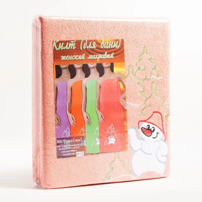 Килт женский для бани и сауны, цвет персиковый вышивка Снеговик, размер 80х150±2 см, махра 300г/м 100% хлопок — Характеристики