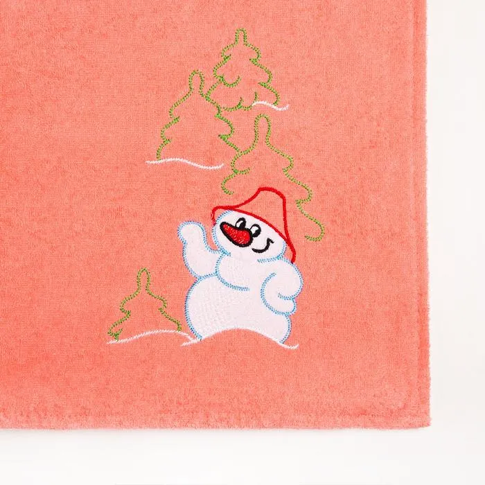 Килт женский для бани и сауны, цвет персиковый вышивка Снеговик, размер 80х150±2 см, махра 300г/м 100% хлопок