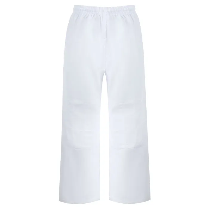 Кимоно предназначено для занятий дзюдо. Изготовлено из хлопка и полиэстера, ткань хорошо впитывает влагу и пропускает воздух. В комплект входят белый пояс, куртка и брюки с дополнительным уплотнением колен.