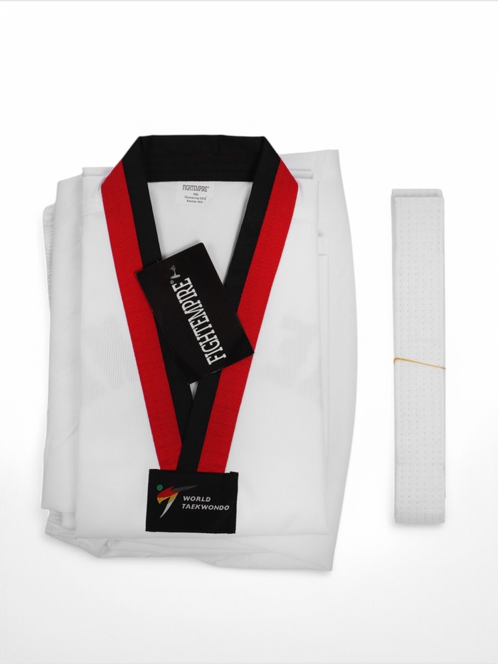 Кимоно для тхэквондо FIGHT EMPIRE, размер 120, детский, белый, чёрно-красный ворот — Характеристики