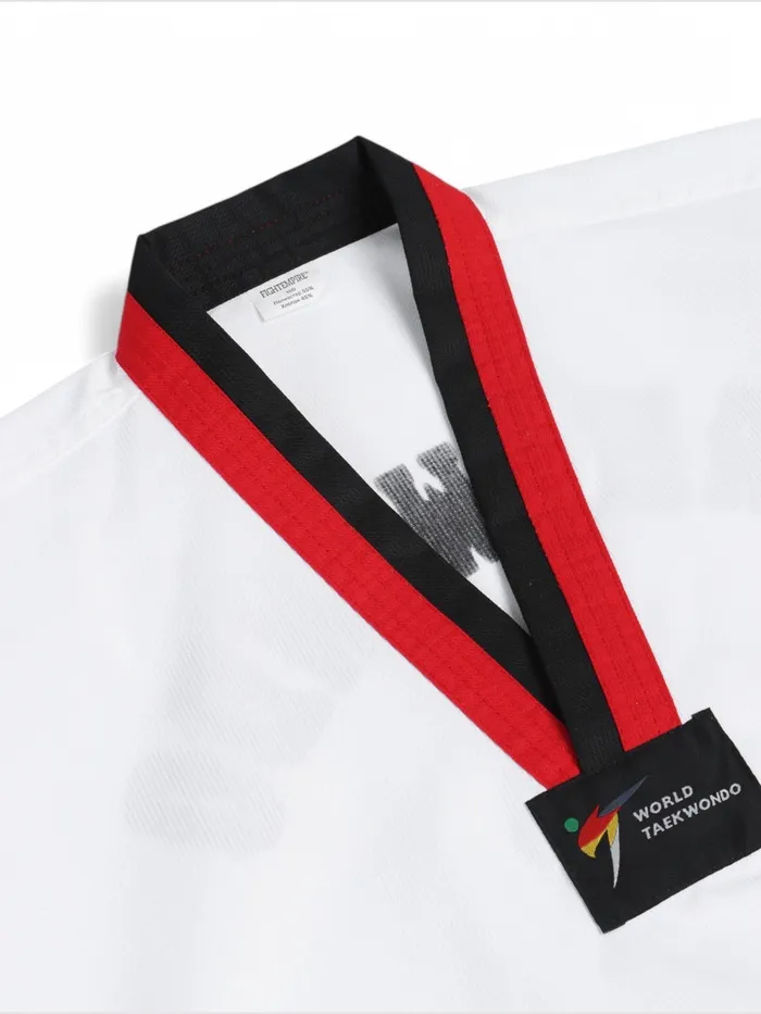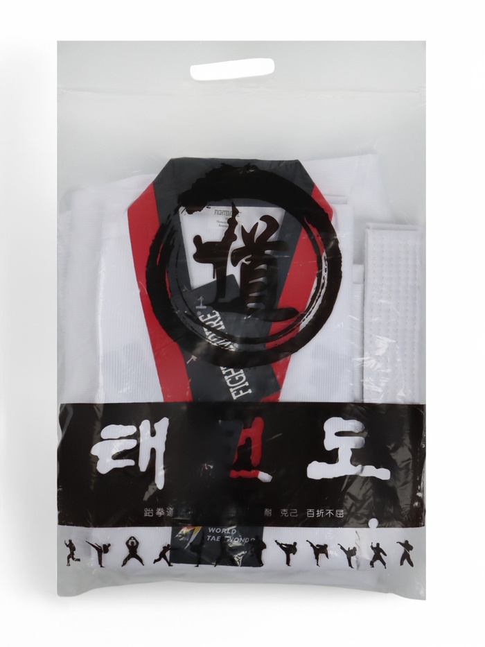 Кимоно для тхэквондо FIGHT EMPIRE, размер 140, детский, белый, чёрно-красный ворот — Характеристики