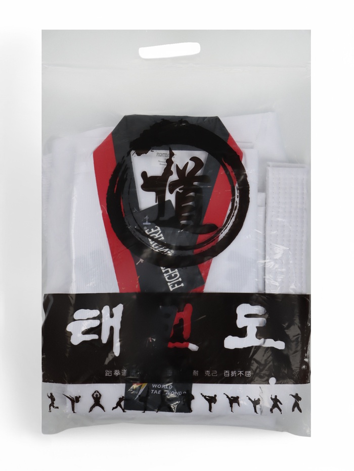 Кимоно для тхэквондо FIGHT EMPIRE, размер 150, детский, белый, чёрно-красный ворот — Характеристики