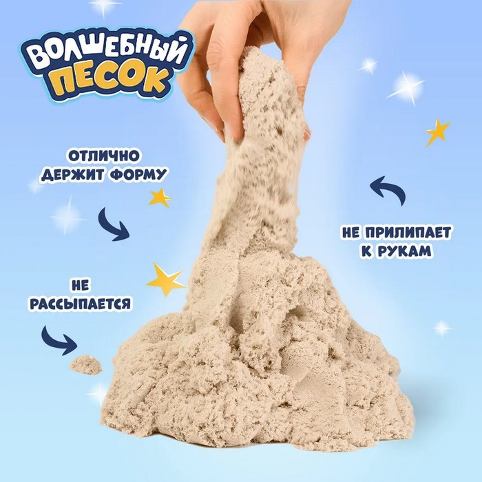 Кинетический песок обладает уникальной воздушной структурой, позволяя прочувствовать каждую песчинку. Он отлично лепится и держит форму, поэтому можно создавать песочные замки, закапывать и искать сокровища, рисовать на песке и придумывать новые игры снова и снова! С «Волшебным песком» ваш малыш будет часами играть и развивать важные навыки.