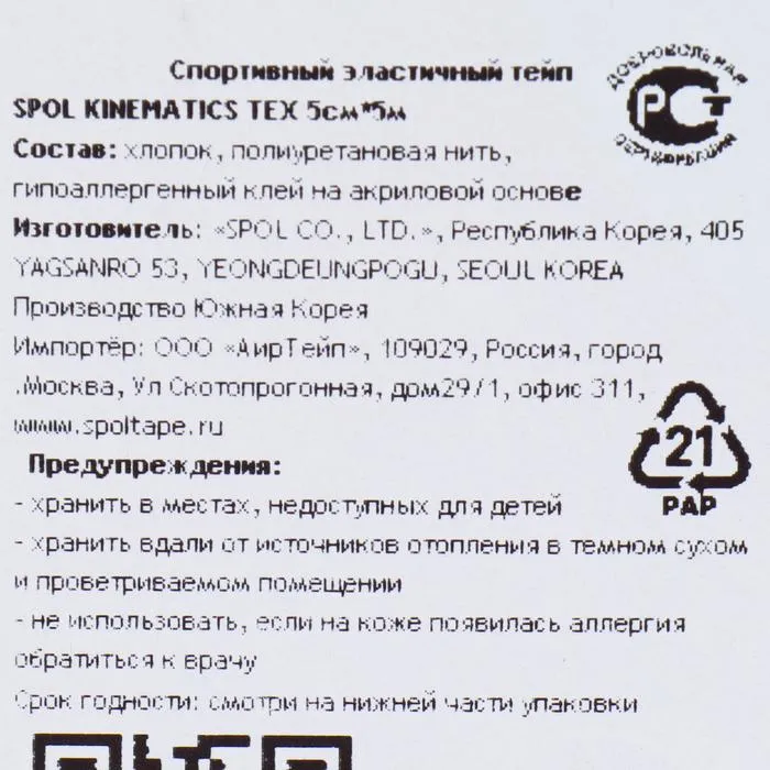 SPOL TAPE - профессиональные тейпы из Южной Кореи. Благодаря высокому качеству, высокой эластичности ткани, гипоаллергенности и при этом доступной цене он пользуется большой популярностью среди врачей, массажистов и других специалистов. Тейп подходит для поддержки стабильности мышц, суставов и сухожилий и для улучшения подвижности. Уменьшает мышечные боли от усталости, напряжения и воспаления, способствует быстрому восстановлению. Стимулирует лимфатическую систему и кровообращение.