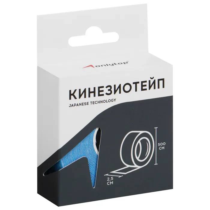 Кинезиотейп ONLYTOP, 2,5 см х 5 м, цвет голубой — Характеристики