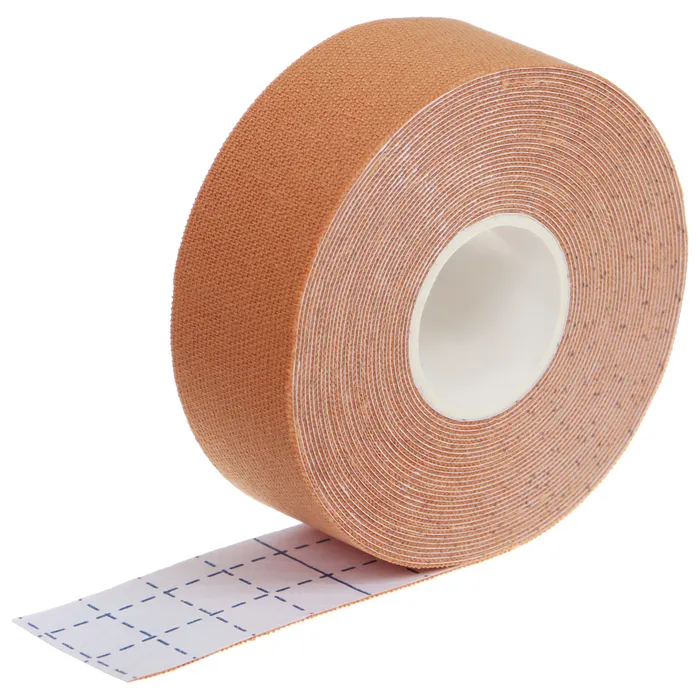 На одну из сторон тейпа нанесён надёжный гипоаллергенный клеящийся слой, который позволяет использовать инвентарь даже в воде. Держится от 3 до 5 дней. Благодаря разметке можно отмерить и отрезать от ленты необходимую длину.