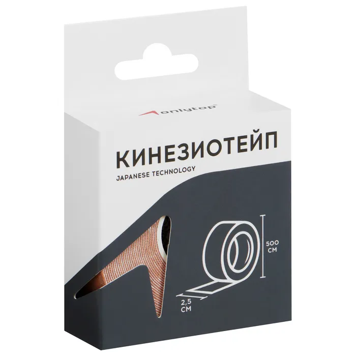 Кинезиотейп ONLYTOP, 2,5 см х 5 м, цвет телесный — Характеристики