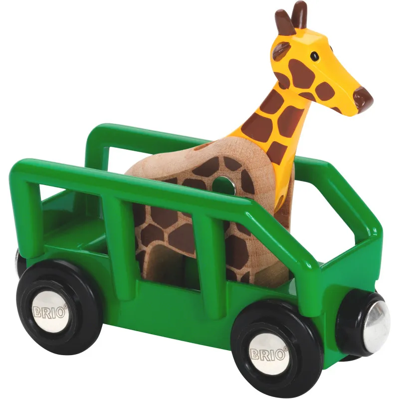 Этот жираф – опытный путешественник на поезде! Набор жираф и вагон от Brio включает в себя жирафа, который путешествует в собственном вагоне и может двигать шеей.