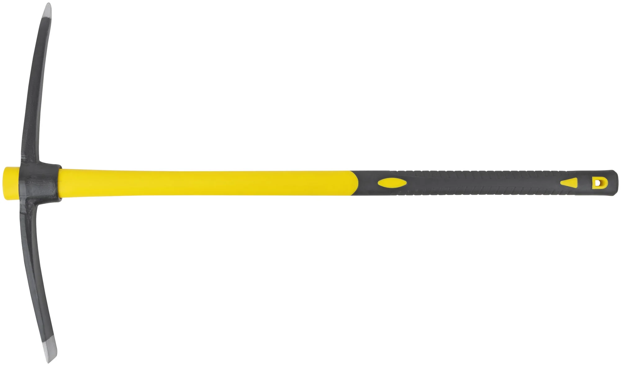 Конструкция кирки включает фиберглассовую ручку, которая обеспечивает надежный захват и снижает вибрацию при ударах. Рабочая часть выполнена из кованой термообработанной инструментальной стали, что гарантирует долговечность и прочность инструмента даже при интенсивном использовании.