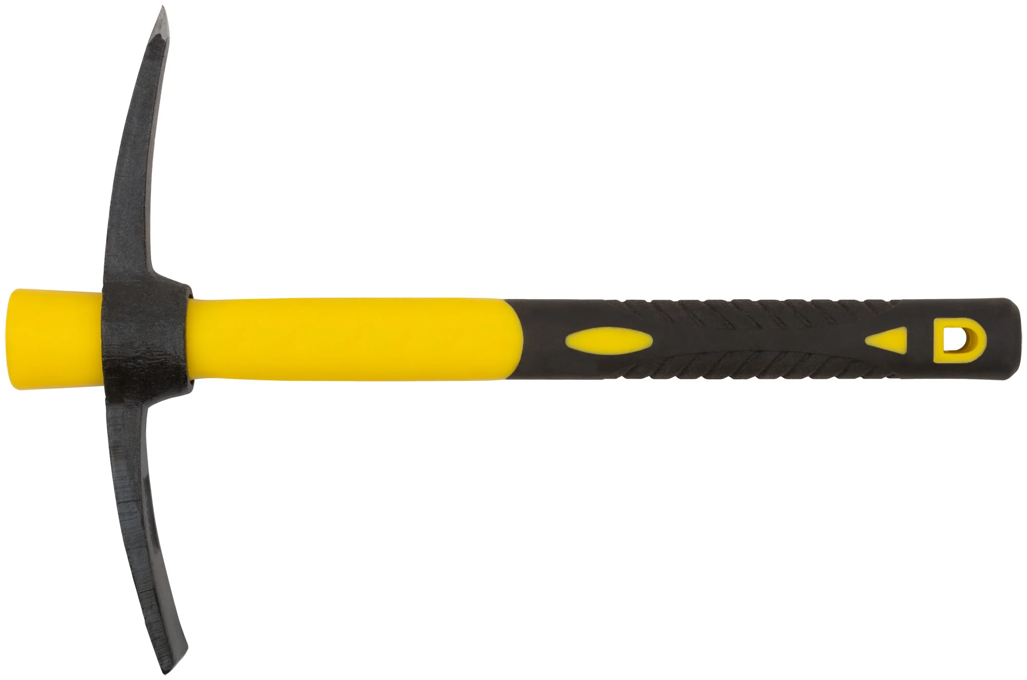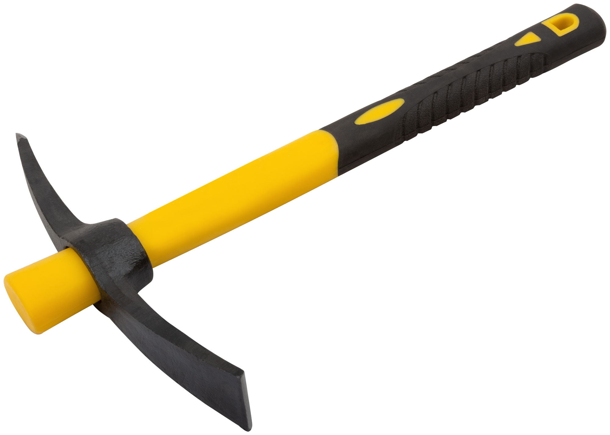 Кирка оснащена фиберглассовой рукояткой, усиленной пластиком, что обеспечивает долговечность и удобство в использовании. Кованая термообработанная инструментальная сталь гарантирует надежность и стойкость к износу.