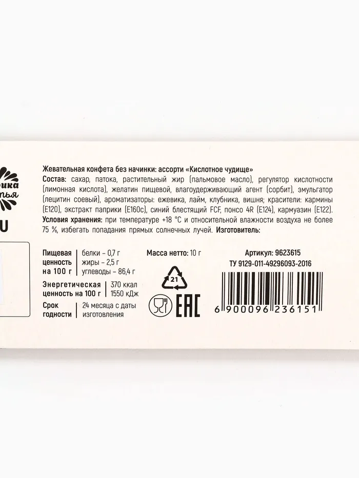 Кислая жевательная конфета «Предсказание», 10 г. — Характеристики