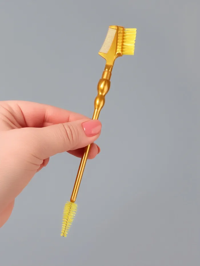 Кисть «2в1 для бровей и ресниц» — это многофункциональный инструмент для ежедневной коррекции взгляда. Он сочетает в себе расчёску с частыми зубчиками и щётку с мягкой щетиной, что позволяет работать как с бровями, так и с ресницами. Длина 18,5 см обеспечивает точность и комфорт при использовании. Золотистый цвет добавляет изделию стиля и делает его заметным среди других аксессуаров.