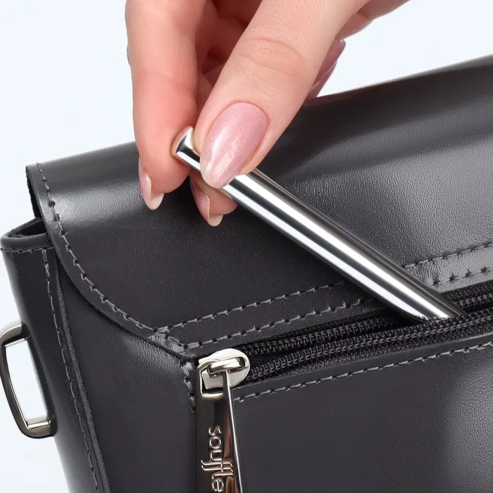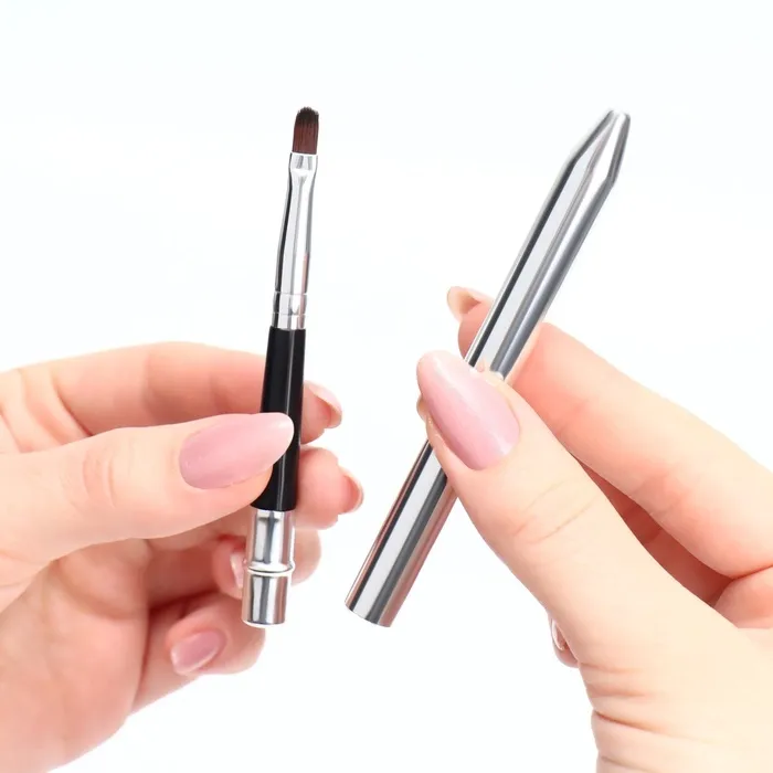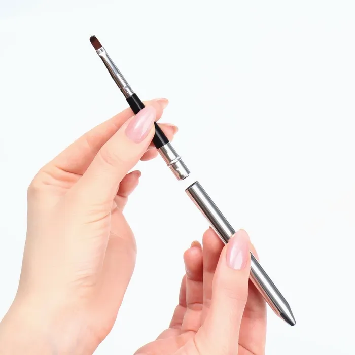При необходимости, с помощью футляра, Вы сможете продлить ручку кисти до 17,5 см. Кисть удобно брать с собой, и она не потеряется в косметичке среди другой косметики.