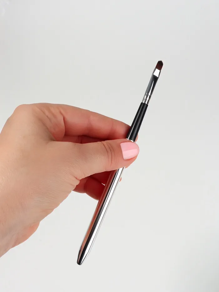 Тонкая и скошенная по бокам форма кисти позволяет аккуратно и быстро задать необходимый контур губ.