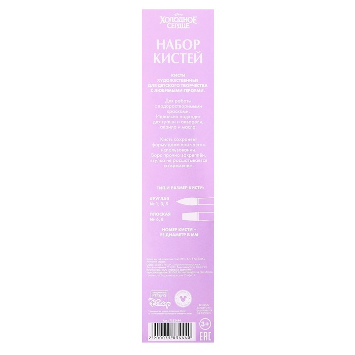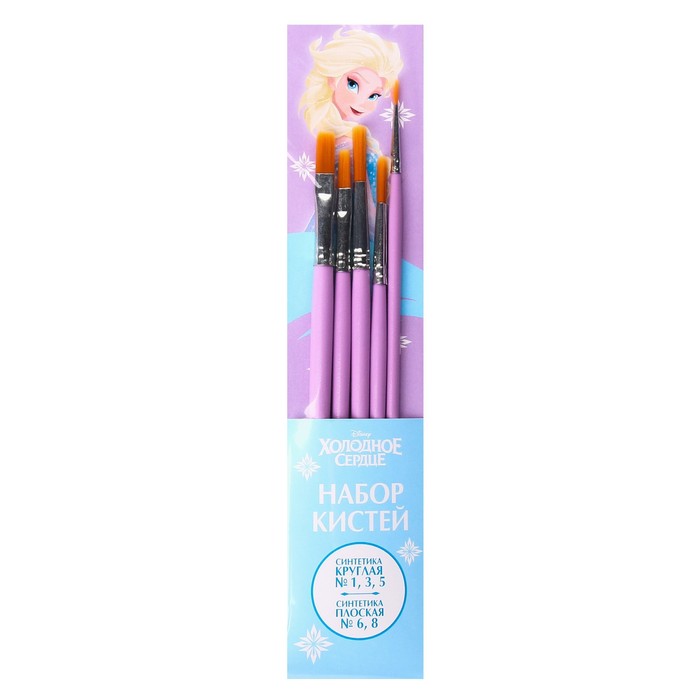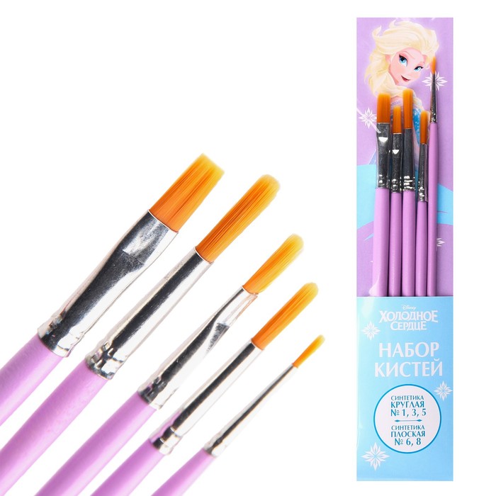 Кисть для рисования, 5 штук, синтетика, круглые №1,3,5, плоские №6,8, Холодное сердце — Характеристики