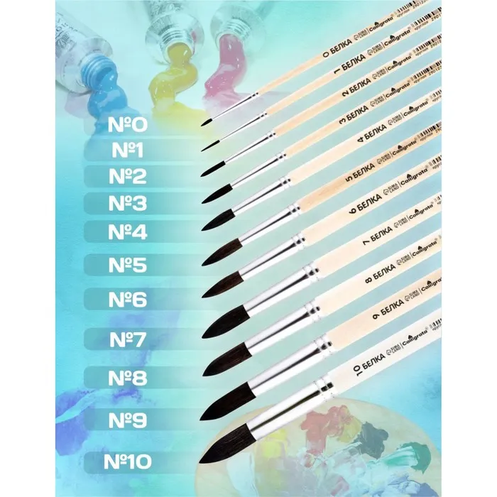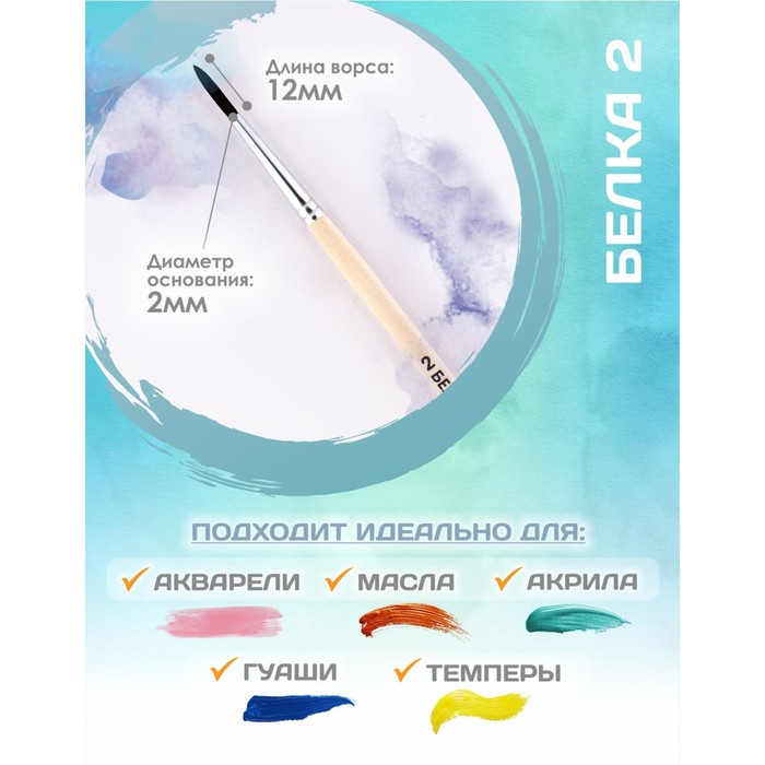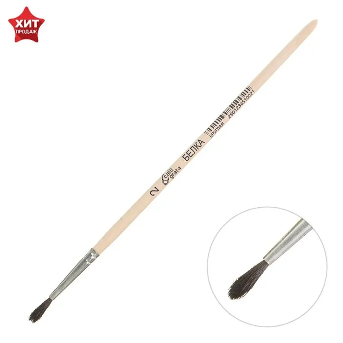 Кисть для рисования, Белка круглая № 2 (диаметр обоймы 2 мм; длина волоса 12 мм), деревянная ручка, Calligrata — Характеристики