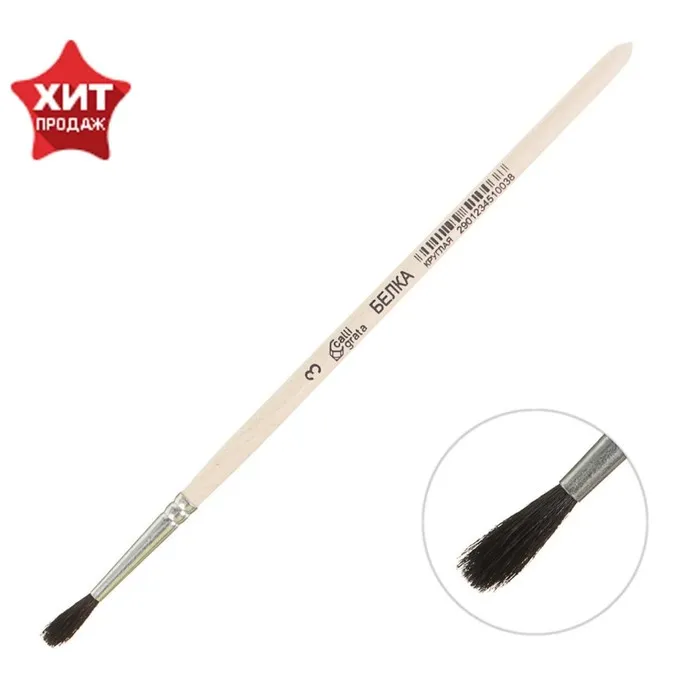 Кисть для рисования, Белка круглая № 3 (диаметр обоймы 3 мм; длина волоса 16 мм), деревянная ручка, Calligrata — Характеристики