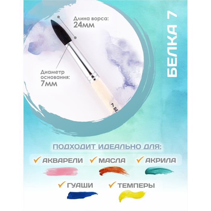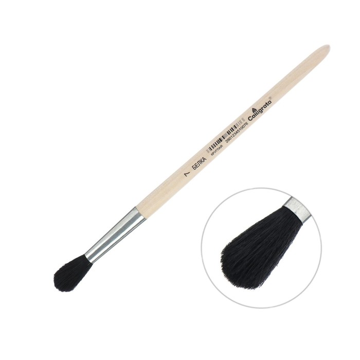 Кисть для рисования, Белка круглая № 7 (диаметр обоймы 7 мм; длина волоса 24 мм), деревянная ручка, Calligrata — Характеристики