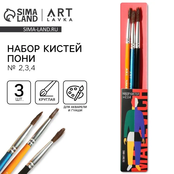 Кисть для рисования набор 3 шт. пони круглые № 2,3,4 — Характеристики