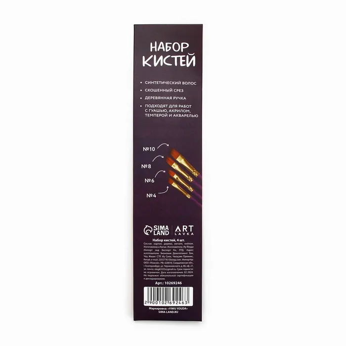 Кисть для рисования набор 4 шт. синтетика плоские № 4,6,8,10 «Дали» — Характеристики