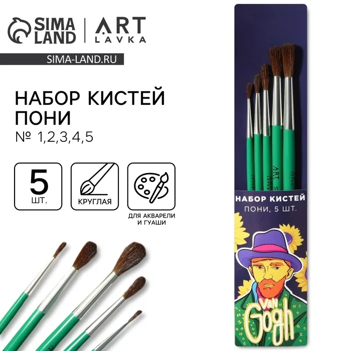 Кисть для рисования набор 5 шт. пони «Ван Гог вектор» №1,2,3,4,5 — Характеристики