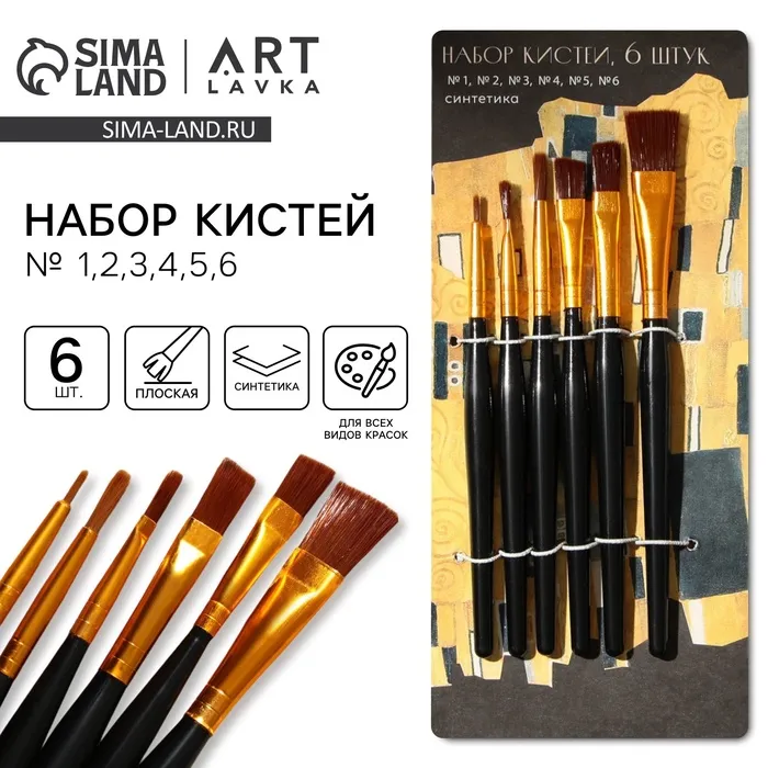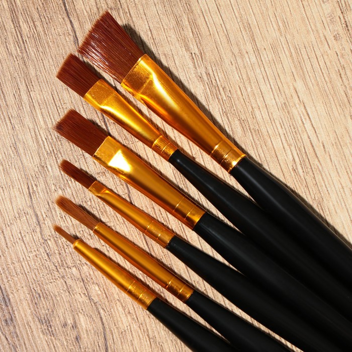 Кисть для рисования набор 6 шт. синтетика плоские «Климт» № 1, 2, 3, 4, 5, 6