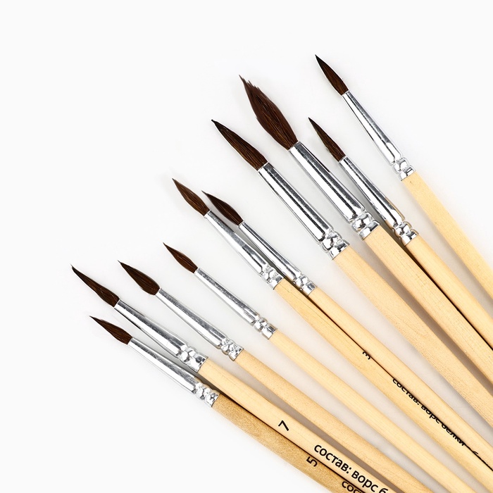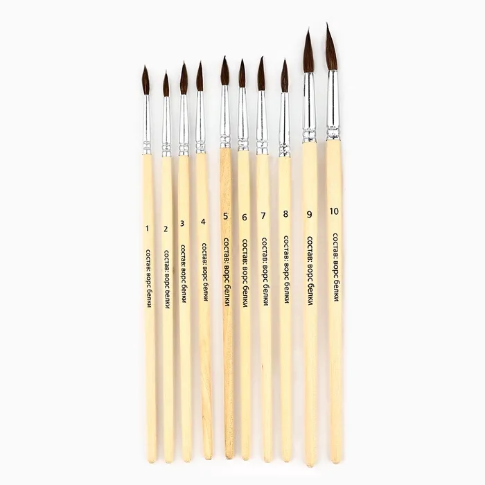 Кисть для рисования, набор белка круглые, 10 шт. № 1,2,3,4,5,6,7,8,9,10 «Ван Гог» — Характеристики