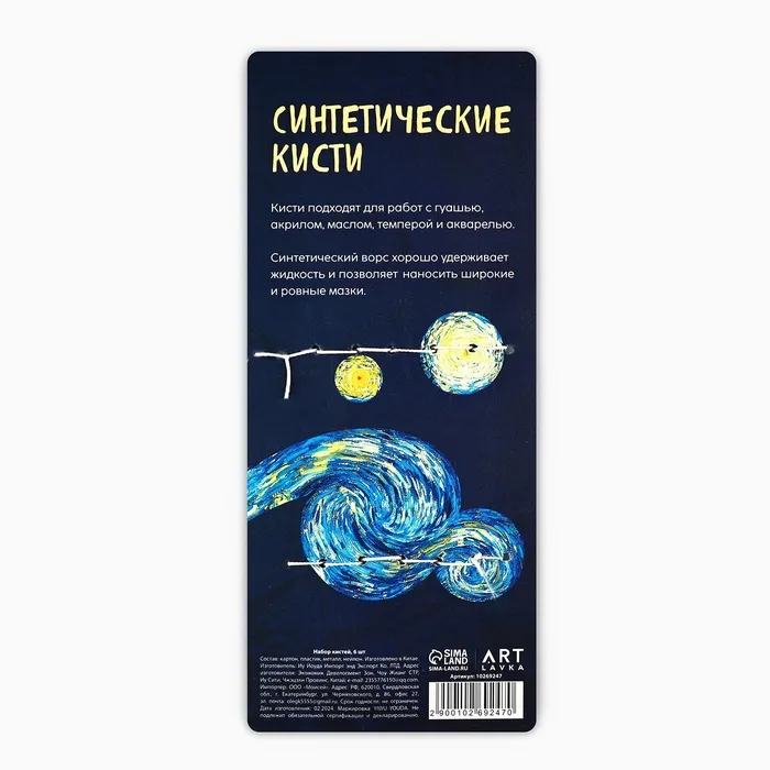 Кисть для рисования, набор синтетика плоские, 6 шт. № 1,2,3,4,5,6 «Ван Гог» — Характеристики