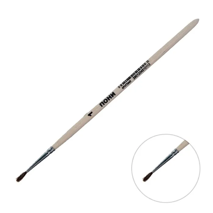 Кисти из волоса пони - это качественная альтернатива беличьим кистям. Ворс средней жёсткости, достаточно упругий и мягкий, подходит для работы с акварелью, гуашью и темперой. С помощью такой кисти легко накладывать мазки краски. Соотношение цены и качества сделало изделия из волоса пони одними из самых востребованных для детей школьного возраста. Ручка изготовлена из берёзы. Цельнометаллическая никелированная бесшовная обойма обеспечивает надёжное соединение ручки и волосяного пучка.