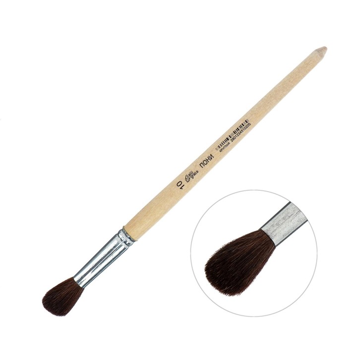 Кисти из волоса пони - это качественная альтернатива беличьим кистям. Ворс средней жёсткости, достаточно упругий и мягкий, подходит для работы с акварелью, гуашью и темперой. С помощью такой кисти легко накладывать мазки краски. Соотношение цены и качества сделало изделия из волоса пони одними из самых востребованных для детей школьного возраста. Ручка изготовлена из берёзы. Цельнометаллическая никелированная бесшовная обойма обеспечивает надёжное соединение ручки и волосяного пучка.
