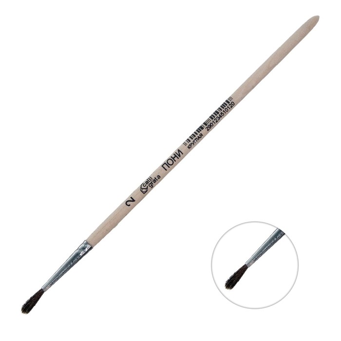 Кисть для рисования, Пони круглая № 2 (диаметр обоймы 2 мм; длина волоса 12 мм), деревянная ручка, Calligrata