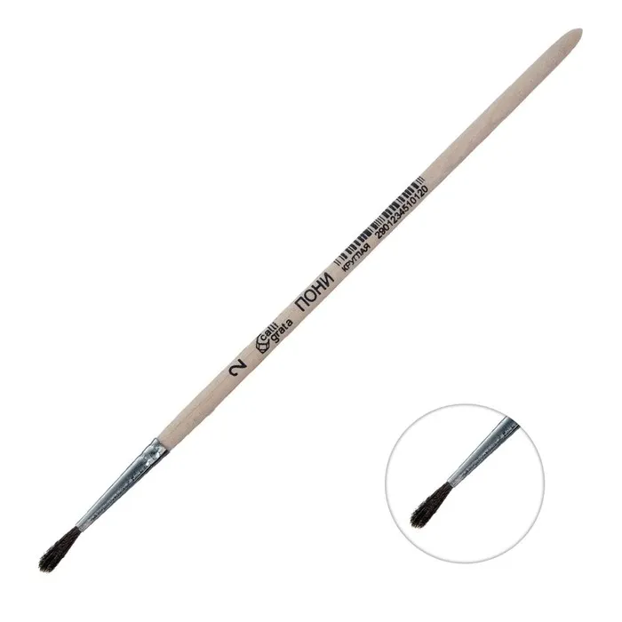 Кисть для рисования, Пони круглая № 2 (диаметр обоймы 2 мм; длина волоса 12 мм), деревянная ручка, Calligrata — Характеристики