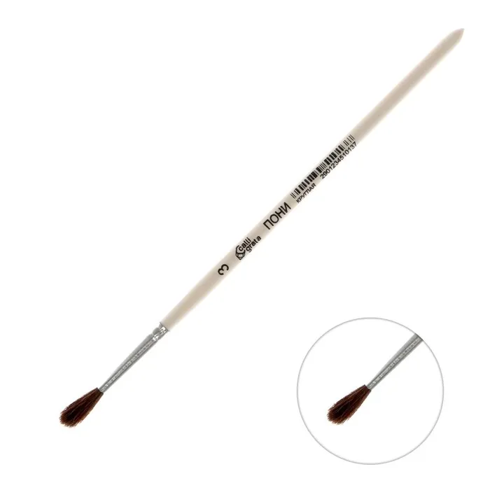 Кисти из волоса пони - это качественная альтернатива беличьим кистям. Ворс средней жёсткости, достаточно упругий и мягкий, подходит для работы с акварелью, гуашью и темперой. С помощью такой кисти легко накладывать мазки краски. Соотношение цены и качества сделало изделия из волоса пони одними из самых востребованных для детей школьного возраста. Ручка изготовлена из берёзы. Цельнометаллическая никелированная бесшовная обойма обеспечивает надёжное соединение ручки и волосяного пучка.