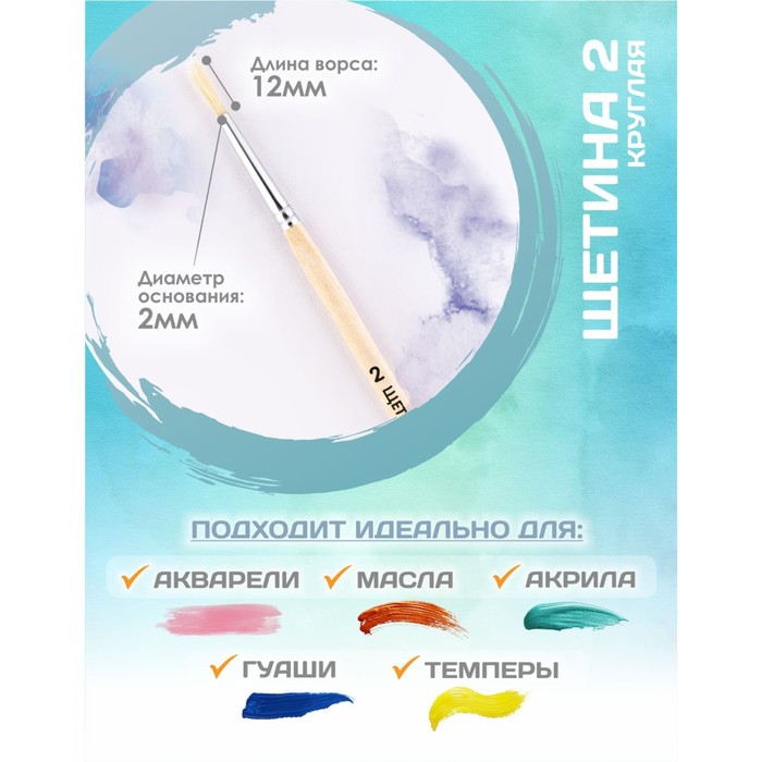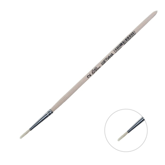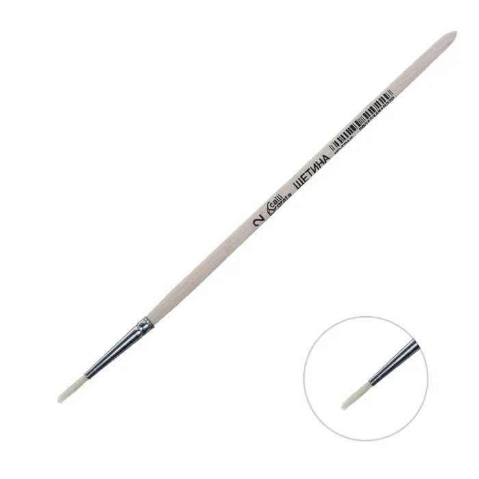 Кисть для рисования, Щетина круглая № 2 (диаметр обоймы 2 мм; длина волоса 12 мм), деревянная ручка, Calligrata — Характеристики