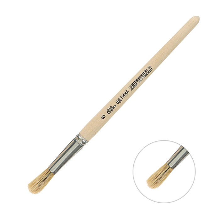 Кисть для рисования, Щетина круглая № 8 (диаметр обоймы 8 мм; длина волоса 26 мм), деревянная ручка, Calligrata — Характеристики