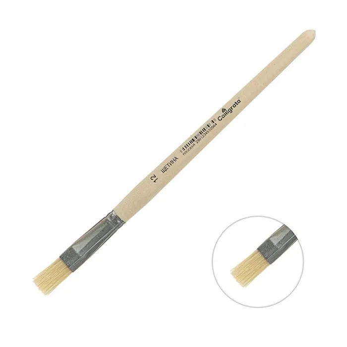 Кисть для рисования, Щетина плоская №12 (ширина обоймы 12 мм; длина волоса 20 мм), деревянная ручка, Calligrata — Характеристики