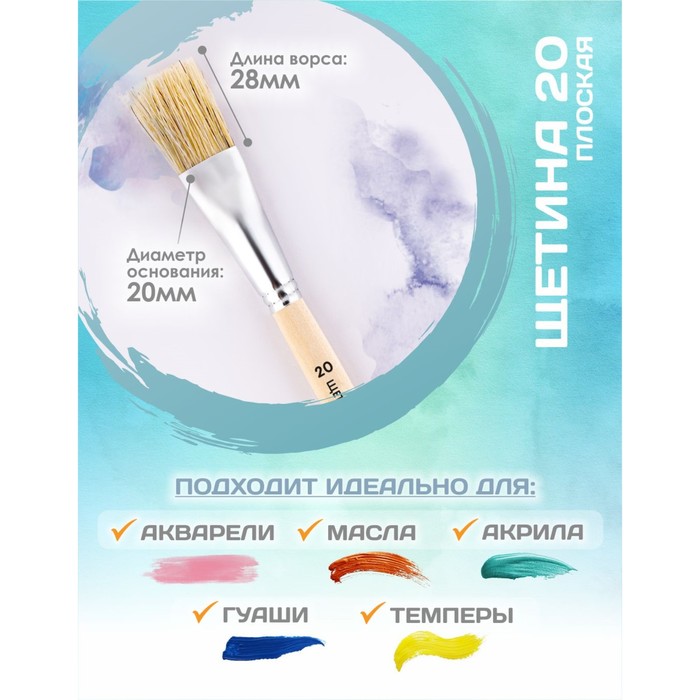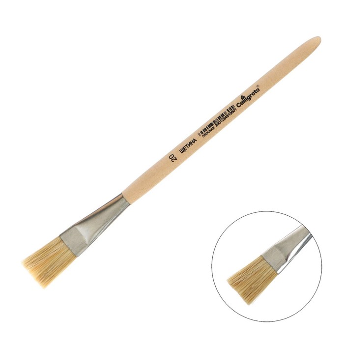 Кисть для рисования, Щетина плоская №20 (ширина обоймы 20 мм; длина волоса 28 мм), деревянная ручка, Calligrata — Характеристики