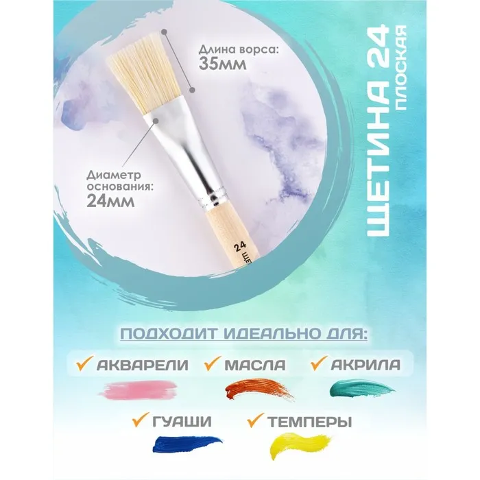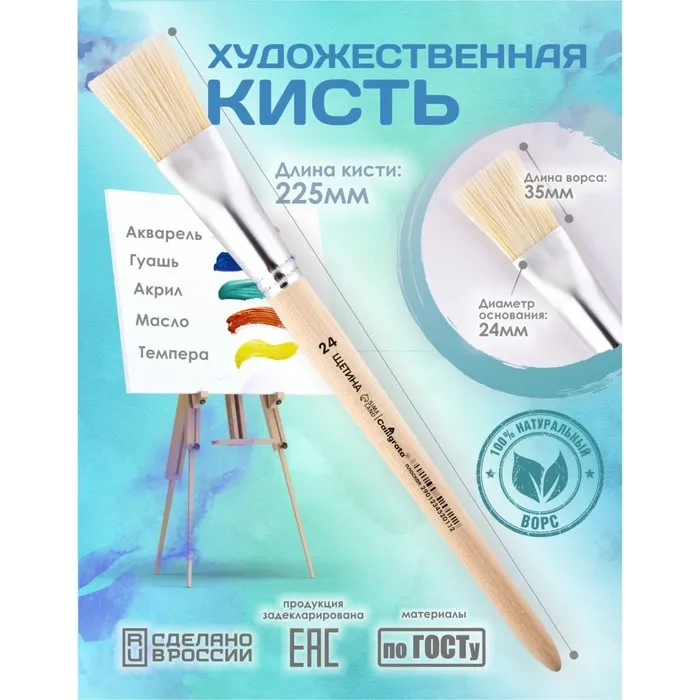 - Важным свойством является расщеплённый кончик, который способствует хорошей наполняемости кисти и ровному нанесению краски. Изделия предназначены для работ с "тяжёлыми красками": маслом, акрилом, темперой, гуашью. Натуральные кисти из щетины – отличный инструмент как для детского и школьного творчества, так для хобби и профессиональной живописи.